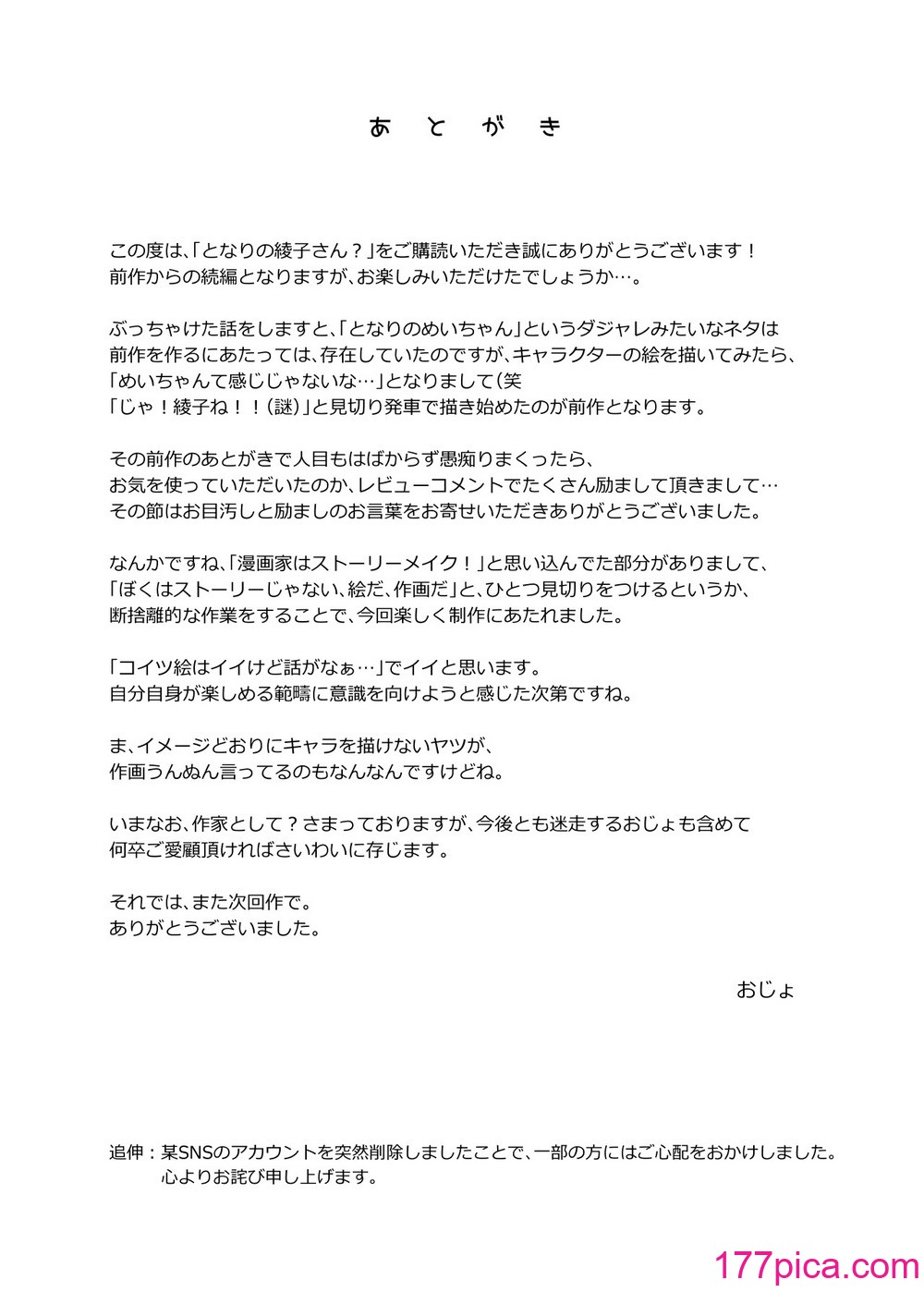 • 在〈[おじょぱいセンチメンタル (おじょ)] となりの绫子さん?[46P]〉中留言功能已关闭